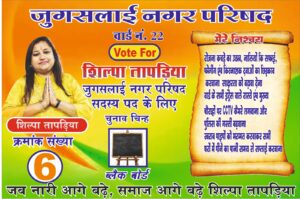उन्होंने मतदाताओं से अपील किया की आगामी चुनाव में वो सभी लोग क्रम संख्या – 06 पर ब्लैक बोर्ड चुनाव चिन्ह पर मोहर लगा कर उन्हें भारी मतों से विजयी बनायें l