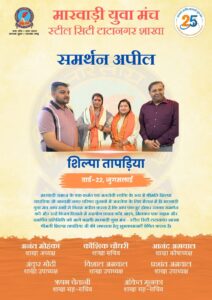 इधर शिल्पा के इस अभियान को गति देने में विनीता अग्रवाल , स्वाति तापडिया, राजीव तापडिया, बादल तापडिया , उमा शर्मा,कोमल अग्रवाल,विकास तापडिया,संदीप तापडिया, शरद चितलांगिया,भव्या बरवालिया,राजीव दुबे, जैसे युवा कार्यकर्त्ताओ का भी अहम् योगदान है l